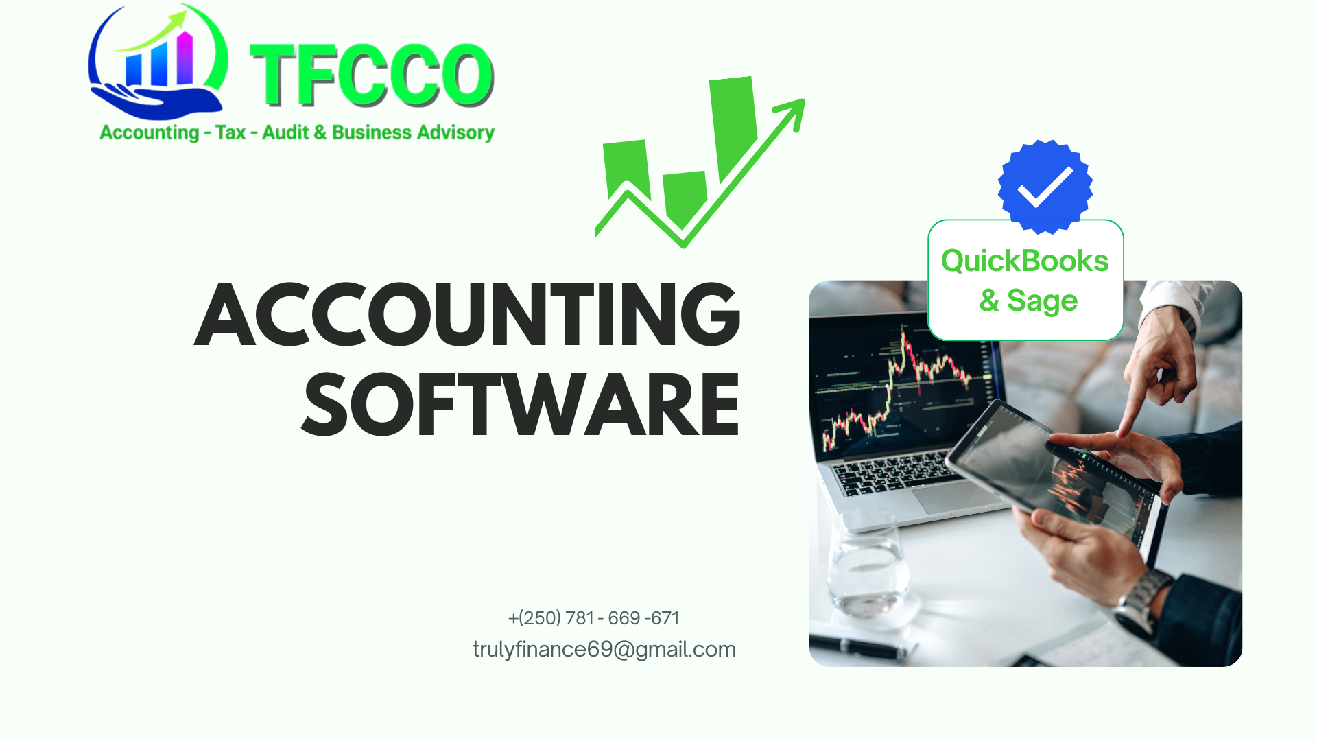 TFCCO( Accounting _Tax, Audit & Business Advisory) provides Both Desktop QuickBooks & QuickBooks online which are used to Set-up or Migrate company information ,Chart of Accounts , Budget codes , Access lights and other security features. Multi-user, Multi-currency and multi language. Set-up an automated period end procedures ( Depreciation & Amortization) . Sage ,Tally and ZohoBook.