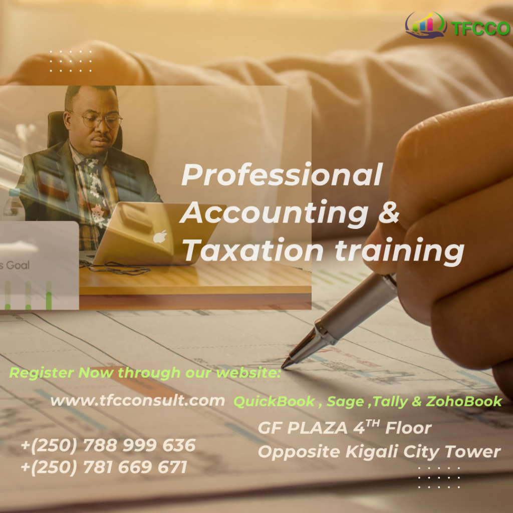 Taxation training , Accounting software training (QuickBooks, Sage,Tally & ZOHOBooks) ,and Advanced excel training : Hello and welcome to TFCCO (Accounting-Tax-Audit & Business Advisory! We are overjoyed that you have decided to advance your accounting career with us.TFCCO (Accounting-Tax-Audit &Business Advisory is a Rwandan professional Consult  firm that was established in accordance with the Rwandan Company Act.